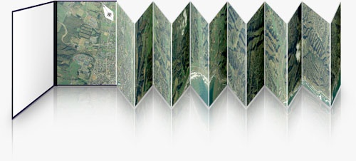 折り畳み製本は別称「蛇腹折り」とも言われています。河川や道路を中心に定型で折られるのが普通で、補強をする裏打ちには布やケントを利用し表面はラミネートで保護します。仕上げは表紙にタイトルや名称を入れて専用ケースに収めます。